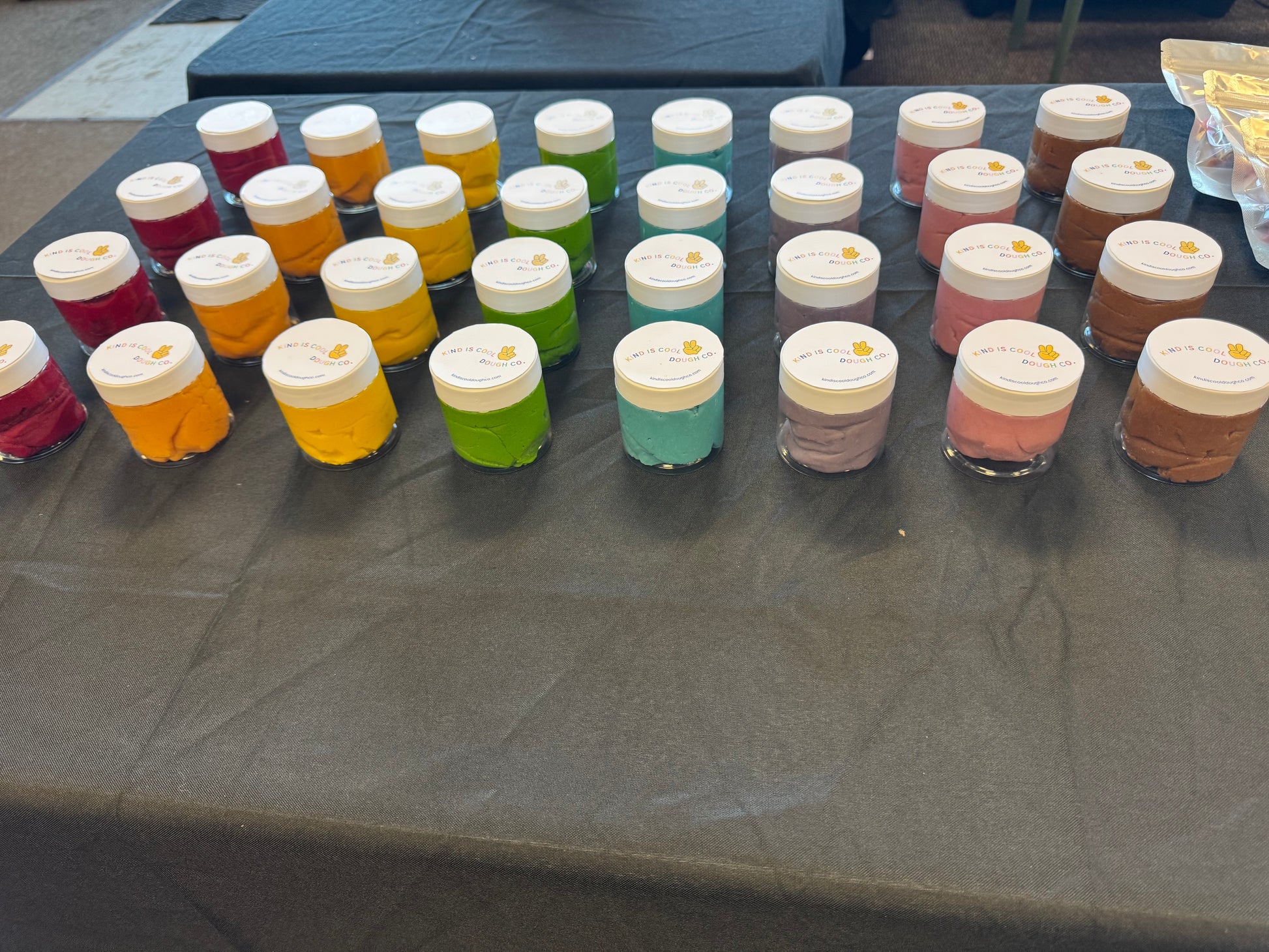 Ingredients: Unbleached Flour, Salt, Cream of Tartar, Coconut Oil, Food Coloring, Organic Potassium Sorbate, essential oils.