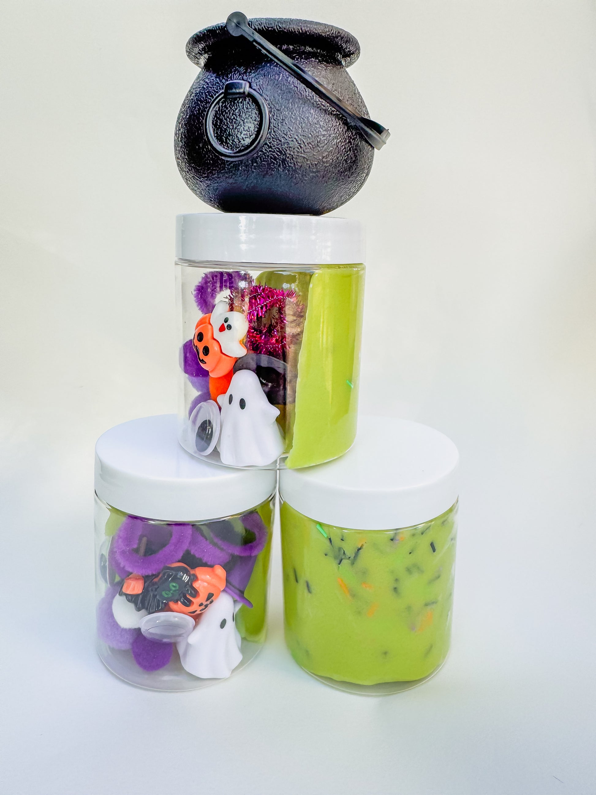 This witch-themed sensory play-dough kit is bubbling with hands-on fun and magical textures that spark imagination. With soft, dough in rich Halloween hues and enchanting trinkets like cauldrons, witches, ghosts, and green “potions,” little ones can mix, mold, and create their own spellbinding world of play.